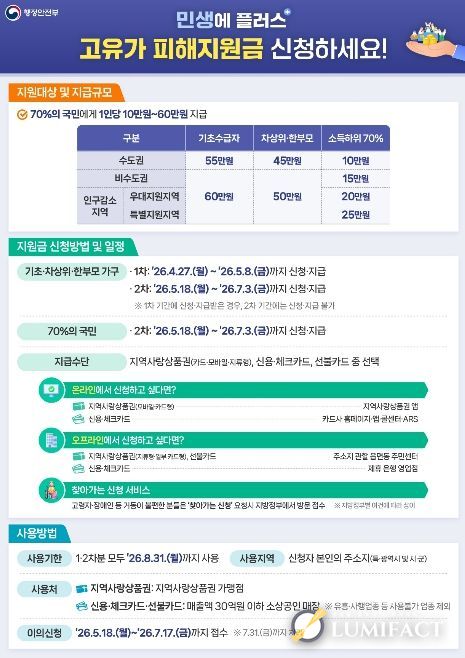 이번 지원금은 급등한 에너지 가격과 물가 상승으로 인해 실질 소득이 감소한 서민 경제를 보호하기 위한 조치로, 국민의 70%를 대상으로 소득 계층별·지역별로 차등 지급될 예정이다.