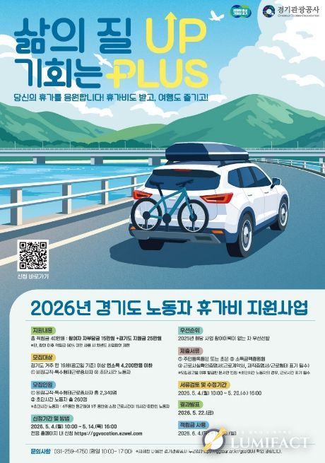 루미팩트 백라희 기자 | 경기도가 경제적 부담으로 휴식을 포기했던 비정규직과 특수형태근로종사자에게 휴가비를 지원하는 ‘취약노동자 휴가비 지원사업’ 참여자를 5월 4일부터 14일까지 모집한다.
