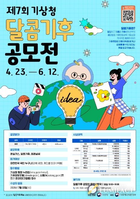 루미팩트 백라희 기자 | 기상청은 기후변화의 과학적 의미를 국민이 직접 글과 그림, 영상 등 다양한 방식으로 표현하는 '제7회 기상청 달콤기후 공모전'을 개최한다.