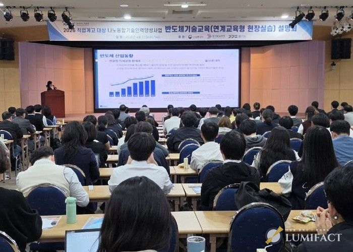 루미팩트 백라희 기자 | 경기도교육청이 22일 경기도경제과학진흥원에서 한국나노기술원과 함께 도내 직업계고 학생의 나노·반도체 분야 인재 육성을 위한 ‘2026 나노융합기술인력 양성사업 및 취업 지원’ 공동설명회를 개최했다.