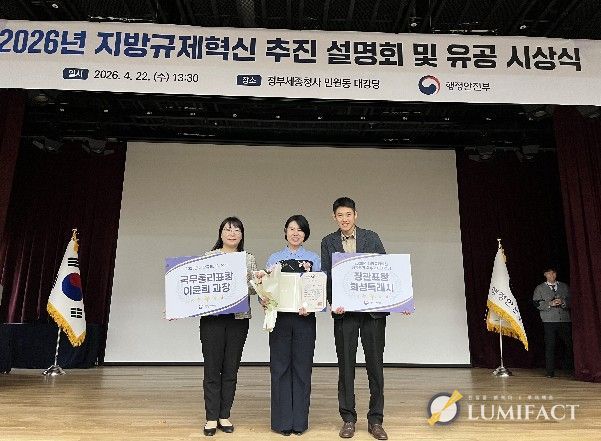 루미팩트 백라희 기자 | 화성특례시는 행정안전부가 주관한 ‘2025년 지방규제개혁 유공 정부포상’에서 단체 부문 행정안전부장관 표창을, 이윤희 효행구 돌봄복지과장이 개인 부문 국무총리표창을 각각 수상했다고 밝혔다.