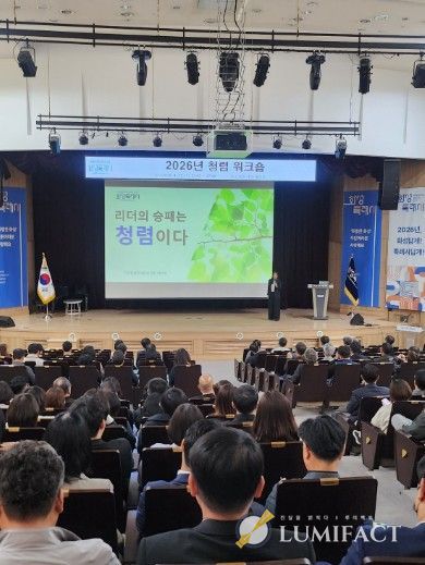 루미팩트 백라희 기자 | 화성특례시는 22일 시청 대강당에서 고위공직자를 대상으로 ‘2026년 청렴 워크숍’을 개최했다. 이번 워크숍은 조직을 이끄는 고위공직자의 청렴 리더십을 강화하고, 반부패 관련 법령에 대한 이해를 높여 공정하고 투명한 공직문화를 정착시키기 위해 마련됐다.