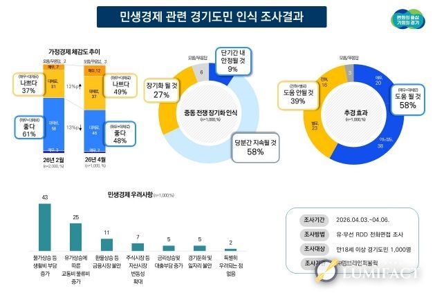 루미팩트 백라희 기자 | 경기도민의 민생경제 체감도가 최근 두 달 사이 뚜렷하게 악화된 것으로 나타났다.