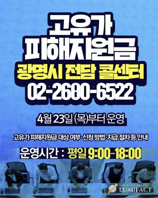 루미팩트 백라희 기자 | 광명시가 ‘고유가 피해지원금’ 지급 관련 민원에 신속히 대응하고자 전담 콜센터를 23일 오전 9시부터 운영한다.