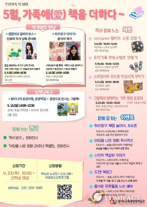루미팩트 백라희 기자 | 경기도교육청평생학습관이 가족 사랑 실천과 가족 간 유대감 증진을 위해 가족 독서체험 행사인 䃵월, 가족애(愛) 책을 더하다’를 운영한다.