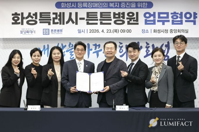 루미팩트 백라희 기자 | 화성특례시는 23일 본관 2층 중앙회의실에서 튼튼병원과 화성시 등록장애인의 건강한 생활 지원과 삶의 질 향상을 위한 업무협약을 체결했다.