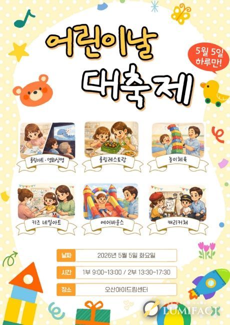 루미팩트 이아린 기자 | 오산시가 운영하는 오산아이드림센터가 어린이날을 맞아 온 가족이 함께 즐길 수 있는 특별 체험행사를 마련한다.
