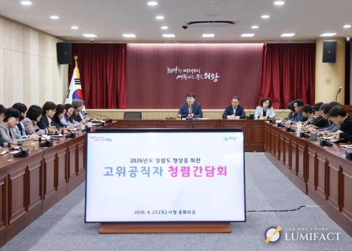 루미팩트 이아린 기자 | 의왕시가 4월 23일 시청 중회의실에서 고위공직자를 대상으로 청렴간담회를 개최하고, 청렴도 향상을 위한 정책 추진 기반 마련에 나섰다.