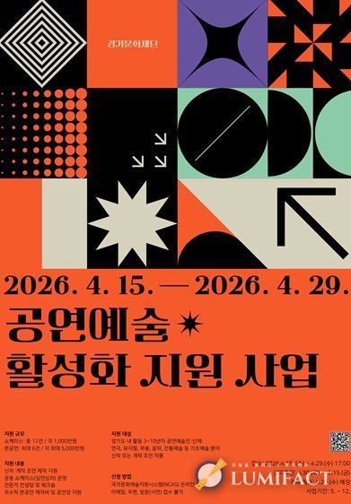 루미팩트 백라희 기자 | 경기문화재단은 경기도 내 유망 공연예술인과 단체의 창작 활동 및 작품 발표 기회 확대를 위해 '2026 공연예술 활성화' 공모를 시행한다.