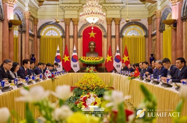 루미팩트 백라희 기자 | 베트남을 국빈 방문 중인 이재명 대통령은 22일(현지시간) 오후 베트남 국가주석궁에서 또 럼 당서기장 겸 국가주석과 정상회담을 갖고, 양국 간 포괄적 전략 동반자 관계 발전 방안과 지역·국제 정세 등에 대해 심도 있게 논의했다고 이규연 청와대 홍보소통수석이 서면 브리핑했다.