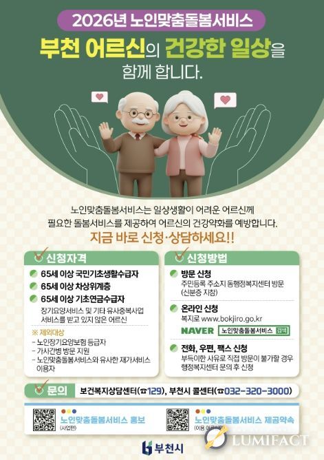 부천시 관계자는 “돌봄이 필요한 어르신을 적극 발굴해 필요한 서비스를 적시에 제공하겠다”며 “지역사회 중심의 돌봄 체계를 지속 강화해 나가겠다”고 말했다.