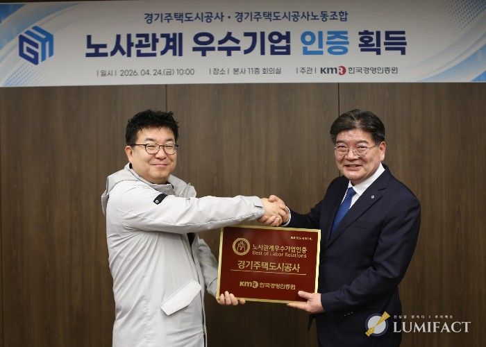 루미팩트 백라희 기자 | 경기주택도시공사(GH)가 상호 신뢰와 존중의 건강한 노사관계 구축을 인정받아 ‘2026 노사관계 우수기업’ 인증을 최초로 획득했다고 24일 밝혔다.