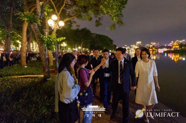 이어 이 대통령 부부는 인근 식당으로 자리를 옮겨 쌀국수와 볶음밥으로 저녁 식사를 함께했다. 이후 호안끼엠 호수 일대를 산책하며 베트남에서의 소중한 추억을 쌓았으며, 산책을 마친 뒤에는 베트남 국민들에게 다시 한번 손을 흔들어 인사를 전하며 일정을 마무리했다.
