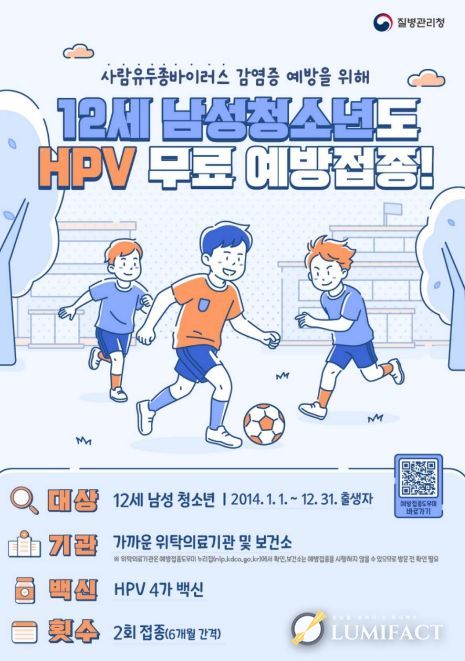 루미팩트 백라희 기자 | 안성시는 사람유두종바이러스(HPV) 감염 질환을 예방하고 접종 형평성을 높이기 위해, 오는 5월 6일부터 HPV 국가예방접종 지원 대상을 12세(2014년생) 남성 청소년까지 확대한다고 밝혔다.