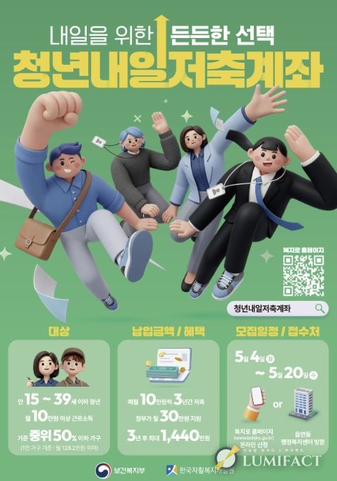 루미팩트 이아린 기자 | 부천시는 일하는 저소득층 청년의 안정적인 사회 정착과 자산 형성을 지원하기 위해 ‘2026년 청년내일저축계좌’ 신규 가입자를 5월 4일부터 5월 20일까지 모집한다.