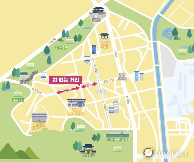 루미팩트 백라희 기자 | 수원시 행궁동 화서문로 34번지부터 신풍로 47번지까지 약 220m 구간이 5월부터 매주 토요일 ‘차 없는 거리’로 운영된다.