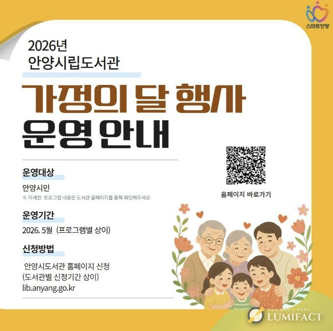 루미팩트 이아린 기자 | 안양시도서관은 5월 가정의 달을 맞아 어린이와 부모가 함께하는 체험프로그램, 가족공연, 인문학 강연, 생활문화 강좌, 전시 등 다양한 행사를 마련했다.