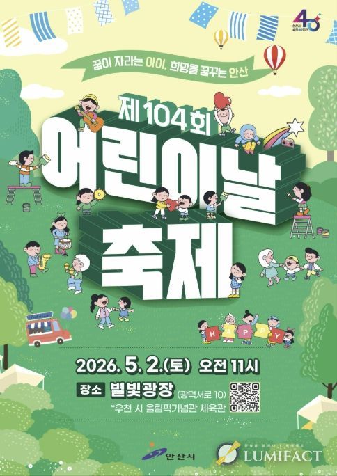 루미팩트 이아린 기자 | 안산시는 다가오는 어린이날을 맞아 온 가족이 함께 즐길 수 있는 ‘제104회 어린이날 축제’를 별빛광장에서 개최한다고 28일 밝혔다.