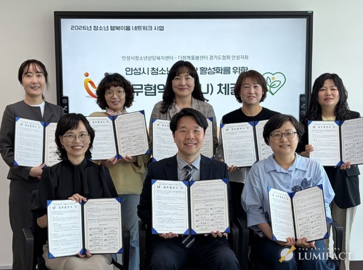 루미팩트 백라희 기자 | 안성시청소년상담복지센터는 지난 27일 안성맞춤공감센터에서 다함께돌봄센터 경기도협의회 안성지회와 청소년의 건강한 성장과 복지 증진을 위한 업무협약(MOU)을 체결했다.