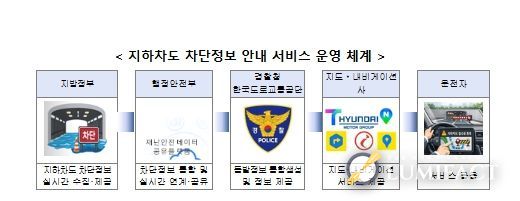 이번 서비스 제공을 위해 행정안전부와 경찰청(한국도로교통공단), 지방정부, 그리고 민간 내비게이션사가 함께 협력한다. 지하차도가 침수되면 지방정부는 현장 통제를 실시함과 동시에 행정안전부의 ‘재난안전데이터 공유플랫폼’에 통제 정보를 전송하고, 이 정보가 경찰청을 거쳐 내비게이션 앱에 실시간 반영되는 방식이다.