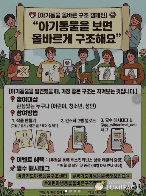 경기도는 어린이를 대상으로 시행하는 ‘야생동물 생태보전교육’에서도 자칫 납치가 될 수 있는 야생동물 구조에 대한 내용을 교육하고 있다. 또 ‘아기동물을 보면 올바르게 구조해요’라는 캠페인을 병행해 미래 세대가 야생동물의 생태적 특성을 이해하고, 인위적 개입을 줄여 자연과 공존하는 삶을 영위할 수 있도록 지속적으로 노력하고 있다.