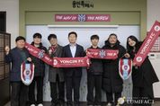 루미팩트 백라희 기자 | 이상일 용인특례시장은 11일 오후 시장실에서 용인FC 공식 서포터즈인 ‘용비어천가’와 용인FC의 K리그2 홈 개막전 준비 상황을 공유하며 소통의 시간을 가졌다고 밝혔다. 이날 이상일 시장은 ‘시민과 함께 성장하는 구단’이라는 비전에 따라 용비어천가 운영진 5명과 소통하며 현장의 목소리를 청취했다. 이 시장은 “구단주이지만 전문가가 아니기에 응원과 지원만 할 뿐 용인FC 선수단 구성에 간섭하지 않겠다고 했고, 단 한 명의 선수도 추천하지 않는 등 제가 한 말을 지켰다”라며 “언론에서 선수단 구성이 잘 됐다고 분석하며 ‘다크호스’로 평가하는 만큼 3월 1일 열릴 홈 개막전이 기대된다”라고 했다. 이 시장은 “시즌 개막을 앞두고 서포터즈 여러분과 직접 만나 준비 상황을 공유하고 현장의 이야기를 들을 수 있어 매우 뜻깊은 시간이었다”라며 “K리그2에서 용인FC가 돌풍을 일으킬 수 있도록 용비어천가의 뜨거운 응원과 지속적인 관심을 부탁한다”라고 했다. 이날 용비어천가는 삼가역-미르스타디움 특화 거리 조성과 홈 경기 조아용 팝업 스토어 설치 등을 요청했다. 이 시장은 “삼