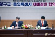루미팩트 백라희 기자 | 용인특례시는 6일 강원특별자치도 양구군과 자매결연을 하고, 두 도시의 교류와 발전을 위해 적극 협력하기로 했다. 이상일 시장은 이날 양구군청 중회의실에서 서흥원 군수와 두 도시 간 우의를 증진하고 상호 교류‧협력하는 데 합의하고, 자매결연 협약서에 서명했다. 이번 협약으로 양구군은 시의 16번째 자매도시가 됐다. 이상일 시장은 “양구는 문화예술 분야에서 과감한 투자를 하고 있고, 양구군립박수근미술관은 2023년 양구 출신 박수근 화백의 1956년 작품 ‘가족’을 품었는데 두 도시가 앞으로 가족처럼 잘 지냈으면 한다”며 “이번 협약을 계기로 양 도시가 협력을 강화해서 함께 발전하길 기원한다”고 말했다. 이 시장은 “양구군과 용인시의 훌륭한 농산물들이 양 도시에서 소비하도록 서로 홍보하는 등 협조 체계를 갖추는 노력도 기울이자"라며 "양구에는 테니스장, 축구장 등 스포츠 시설이 아주 잘 갖춰져 있는 만큼 용인의 스포츠팀이나 단체들이 양구를 찾아 훈련하는 등 체육 분야의 협력도 도모하면 좋겠다"고 했다. 서흥원 군수는 “용인의 인프라와 비전이 대한민국 지방자치단체 중