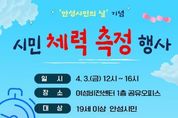 루미팩트 백라희 기자 | 안성시보건소는 ‘안성 시민의 날’을 맞아 시민의 건강 증진과 올바른 생활 습관 형성을 돕기 위한 ‘시민 체력 측정 행사’를 개최한다고 밝혔다. 이번 행사는 오는 4월 3일 오후 12시부터 4시까지 안성시 여성비전센터 1층 공유오피스에서 진행된다. 현장에서는 체력 측정뿐만 아니라 심뇌혈관 질환 예방, 신체활동, 금연, 구강 관리 등 건강 인식 향상을 위한 다양한 건강증진 부스도 함께 운영될 예정이다. 체력 측정은 1인당 약 30분이 소요되며, 원활한 운영을 위해 오는 3월 27일까지 선착순 80명을 대상으로 사전 접수를 받는다. 신청은 홍보물에 포함된 QR코드 또는 온라인 설문 링크를 통해 할 수 있다. 당일 현장 접수도 가능하지만, 대기 시간이 발생할 수 있어 사전 예약이 권장된다. 상세 측정 절차는 ▲혈압 체크 ▲체격 검사(신장, 체중, 체성분 분석) ▲근력 측정 ▲심폐지구력(65세 이상은 협응력) 측정 순이며, 측정 후에는 결과지 제공과 함께 1:1 맞춤형 상담이 이뤄진다. 단, 안전을 위해 행사 당일 혈압이 고혈압 기준(수축기 160mmHg 또는 이완기 100mmHg 이상)을 초과